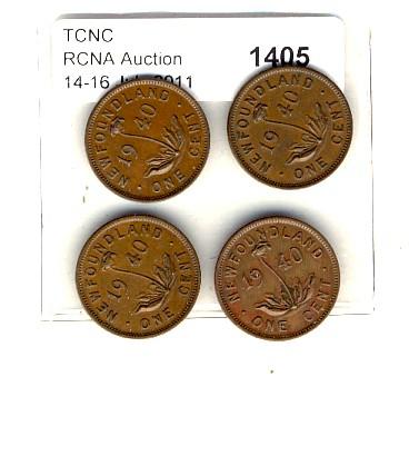 Nfld 1940 & 1941c 1¢ Re-eng and Double Die varieties. Lot of 4 coins, two of each date VF+ to EF.