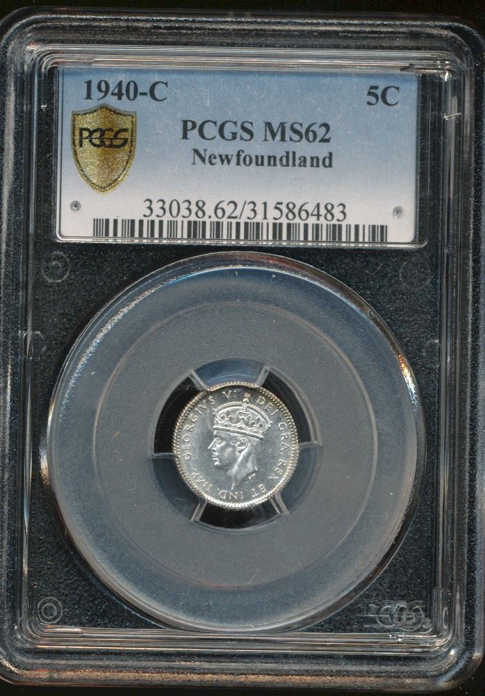 Nfld 1940c 5¢ PCGS MS62. Brilliant issue.