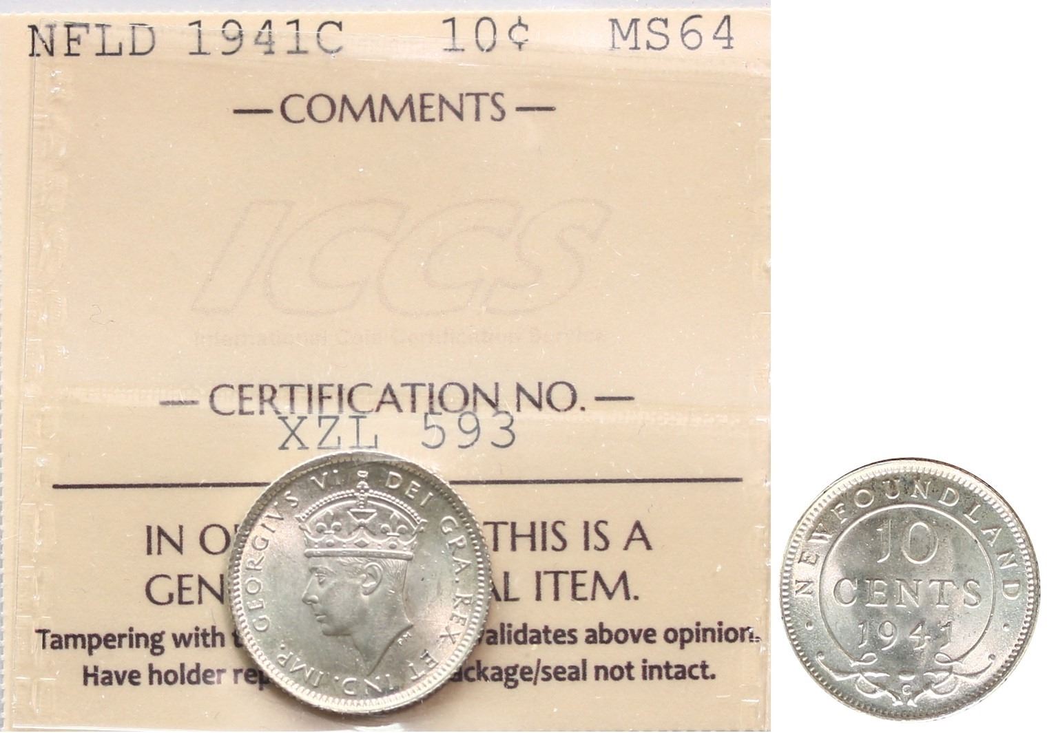 Nfld 1941-C 10¢ ICCS Choice Mint State-64