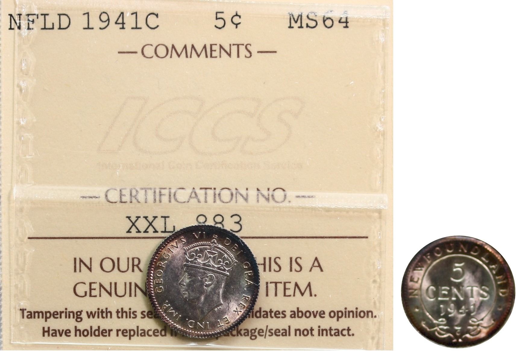 Nfld; 1941-C 5¢ ICCS Choice Mint State-64