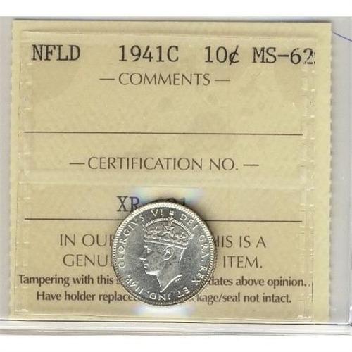 Nfld 1941c 10¢ ICCS MS62. Very Lustrous.
