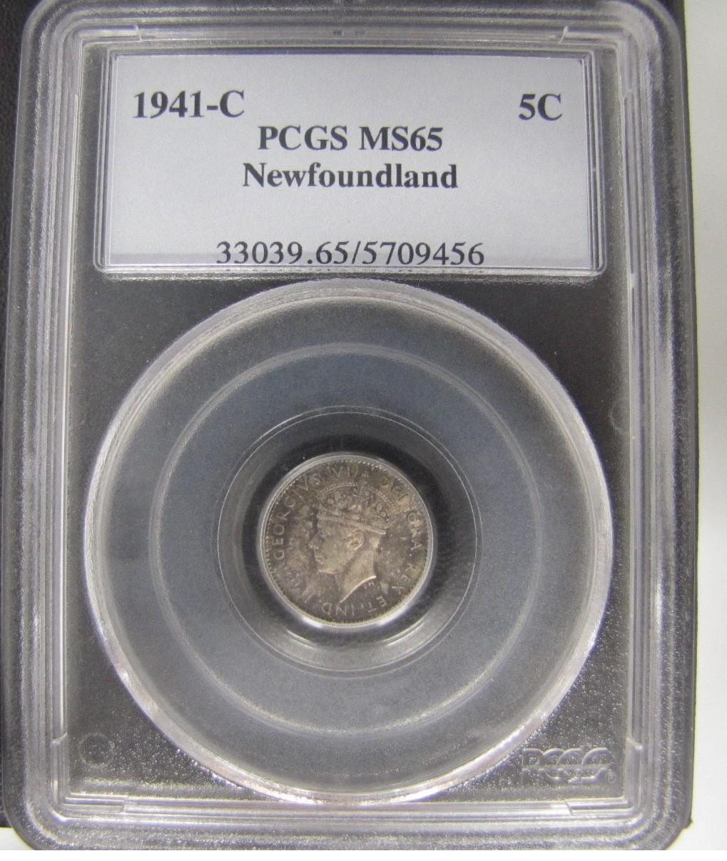 Nfld 1941c 5¢ PCGS MS65. Gem toning.