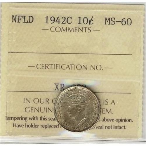 Nfld 1942c 10¢ ICCS MS60. Nice eye appeal.