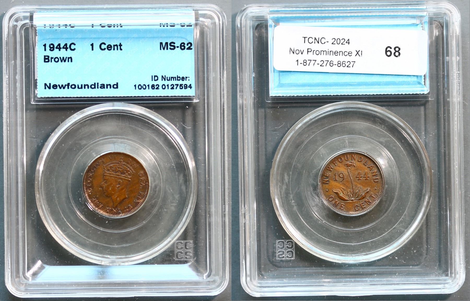 Nfld 1944-c 1¢ CCCS Choice Mint State-62. Very scarce in MS condition. Key date of the series.