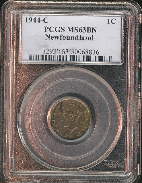 Nfld 1944c 1¢ PCGS MS63BN. Scarce date.