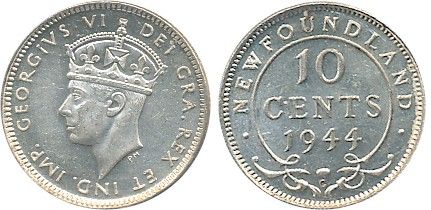 Nfld 1944c 10¢ ICCS MS63. Strong full white lustrous issue.