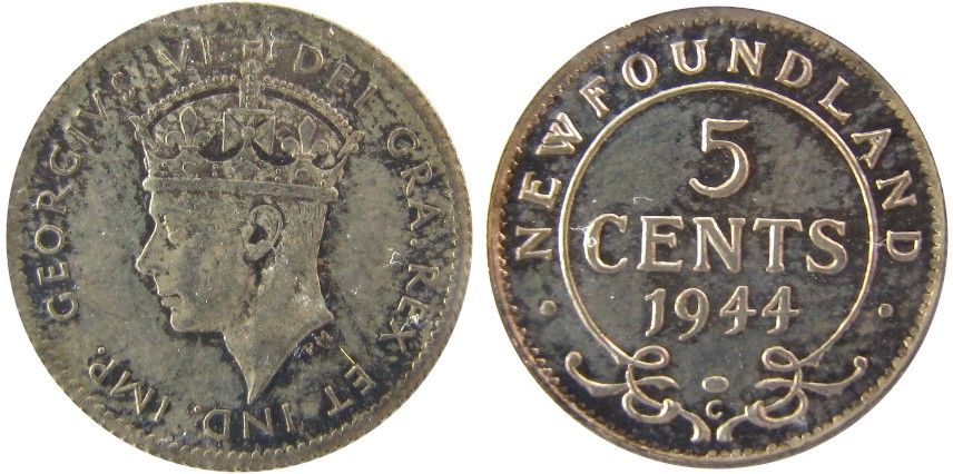 Nfld 1944c 5¢ ICCS MS63.