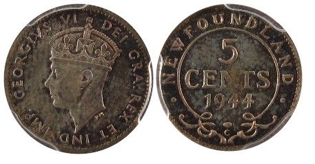 Nfld 1944c 5¢ PCGS MS65. Nice example.