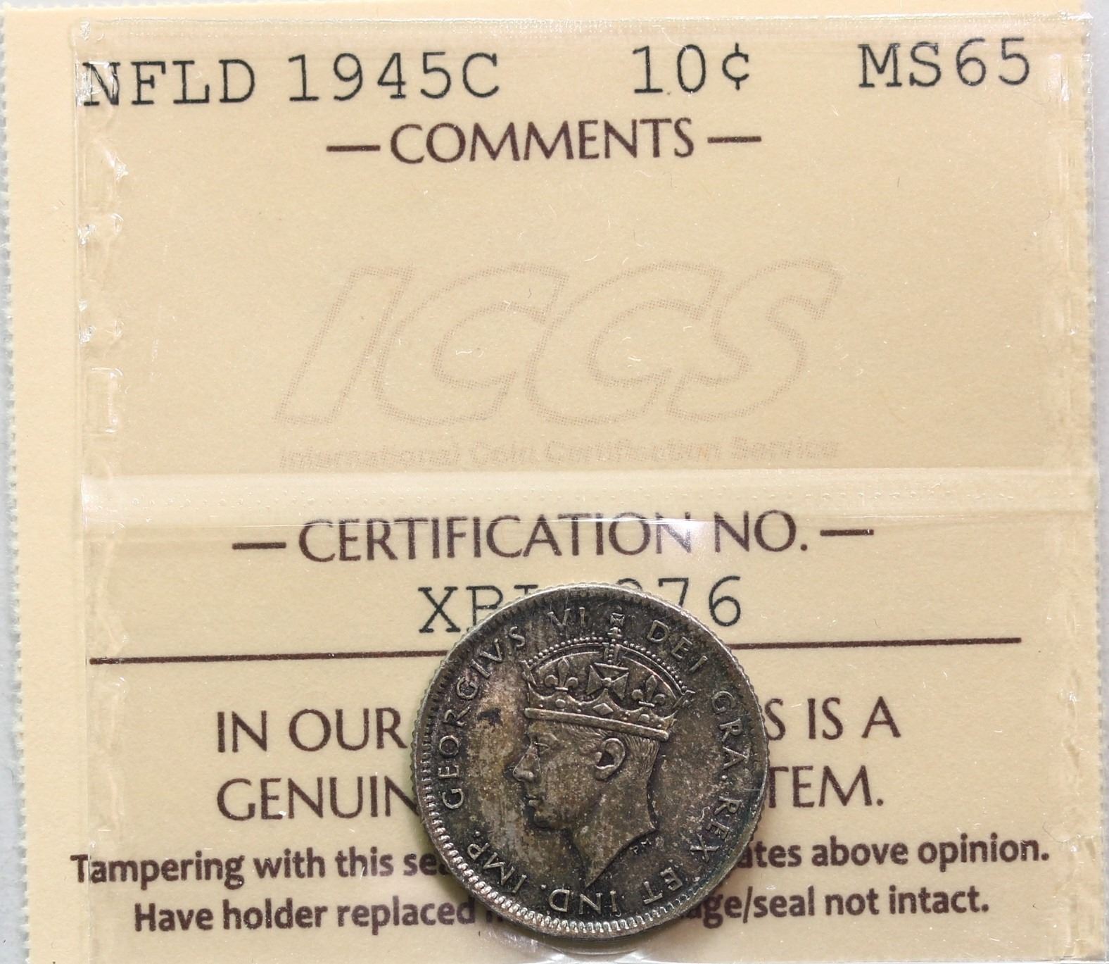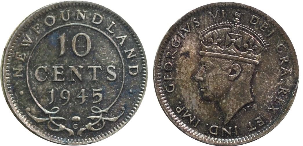 Nfld; 1945 10¢ ICCS Gem Mint State-65 Superbly toned