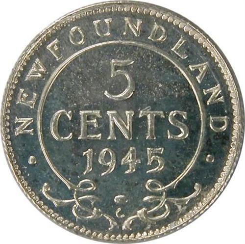 Newfoundland Five Cents 1945C ICCS MS-63 Cameo. Untoned