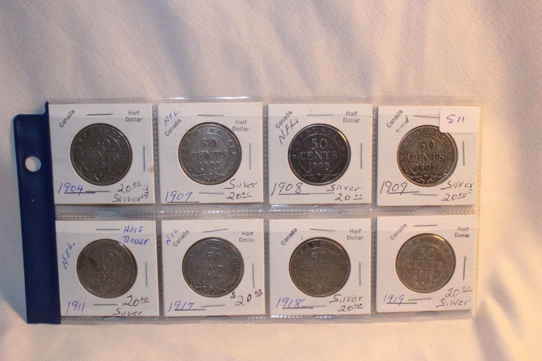 Nfld. Fifty Cent Coins - Complete Set (8 Coins)