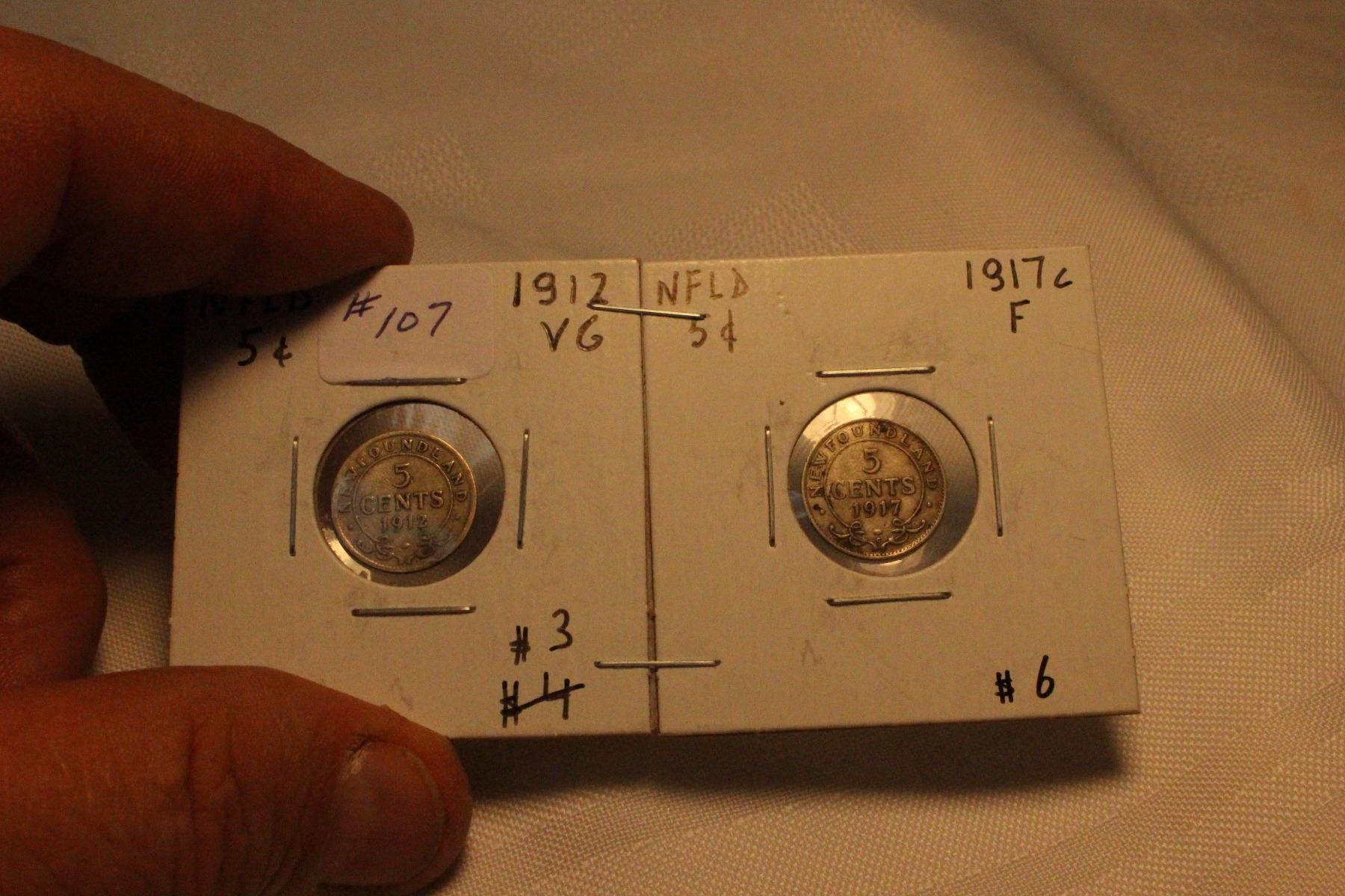 Nfld. Five Cent Coins (2) 1912; 1917