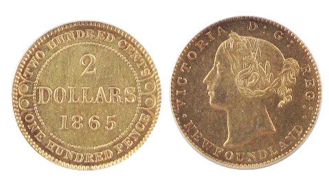 Nfld Gold 1865 $2 SEGS MS60. Designated light cleaning.