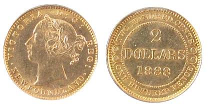 Nfld Gold 1888 $2 Obv 3 ICCS MS60.
