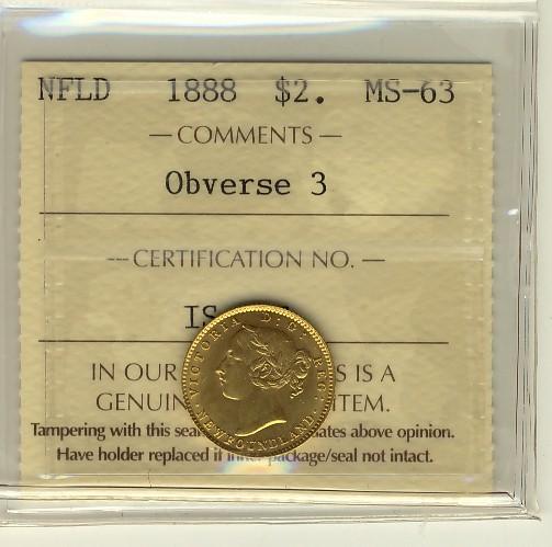 Nfld Gold 1888 Nfld Obv 3 ICCS MS63. Lustrous.