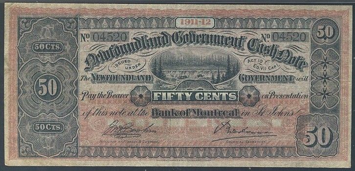 Nfld Gov't Cash Note; 1911-12 25¢ NF8b #04520, PMG VF25.