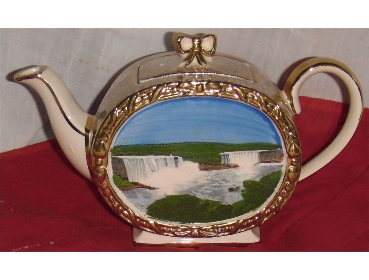 Made in England by Sadler, old one: Niagara Falls teapot, is this one as is, and cherished by mother (who is now 90 years old) in her collection, as she says now someone else can cherish it too like an antique or nearly so;