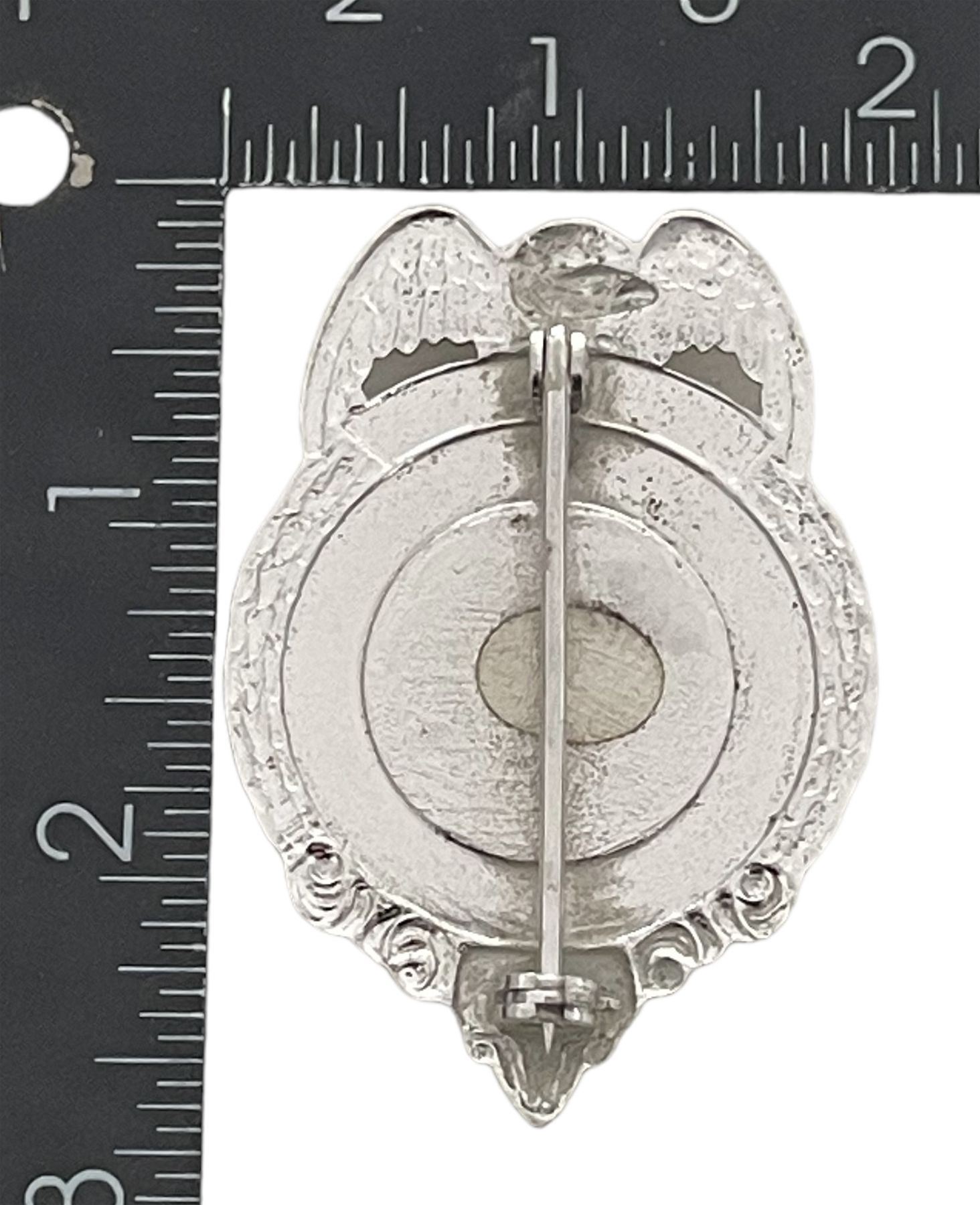 Number 81. White metal with black lettering. Badge has a pin fastener.