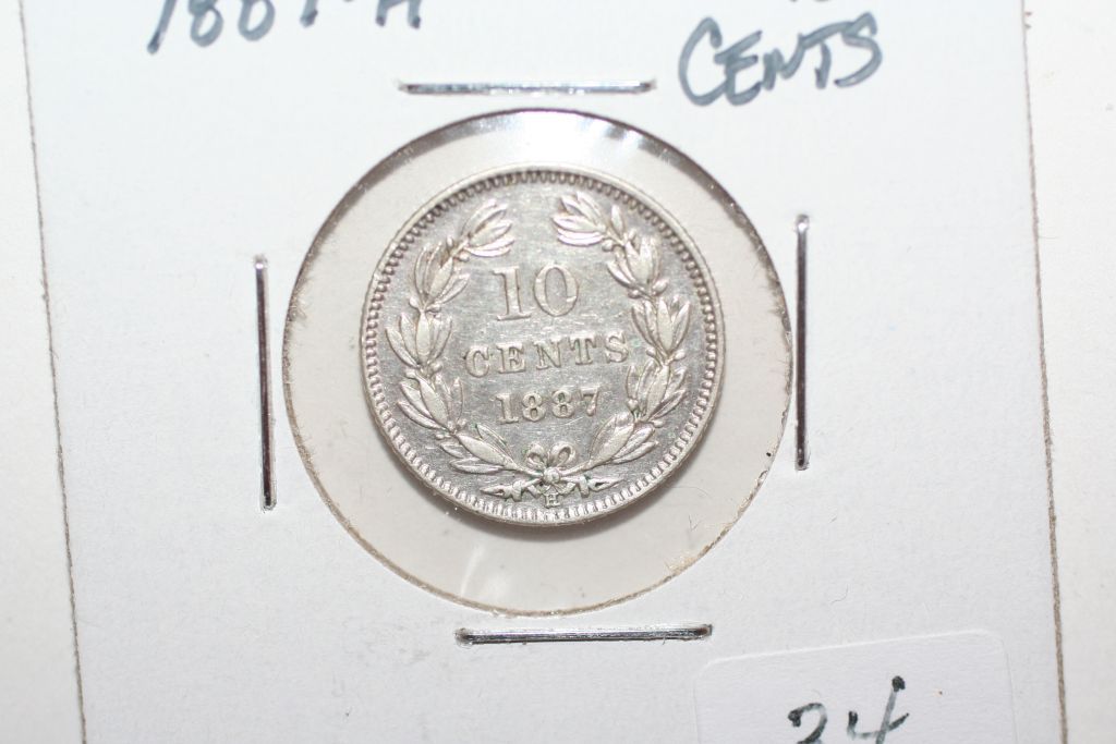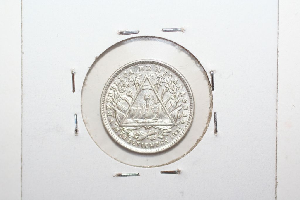 This lot is an 1887-h nicaragua 10 cents silver coin