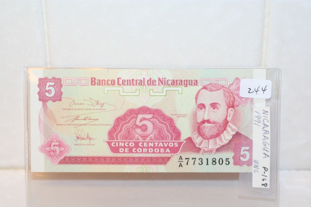 This lot is a 1991 nicaragua 5 centavos note
