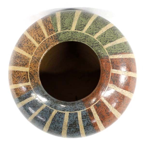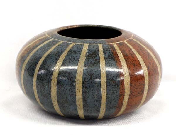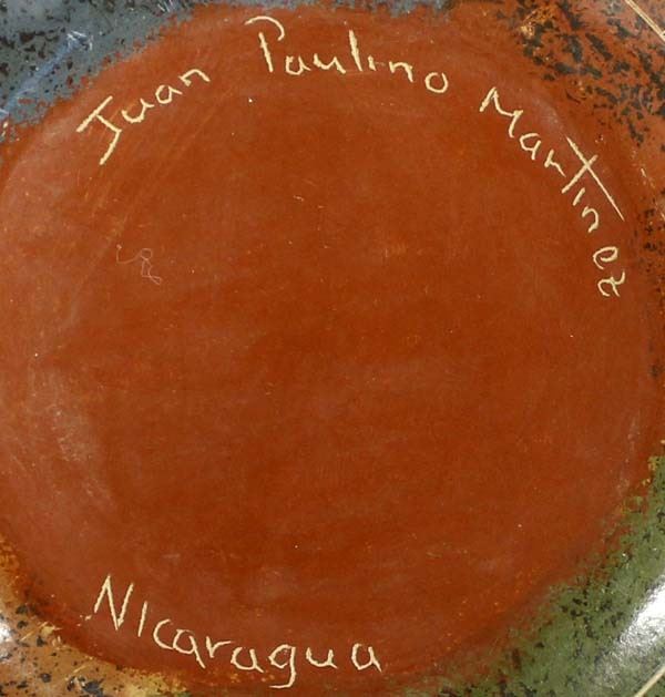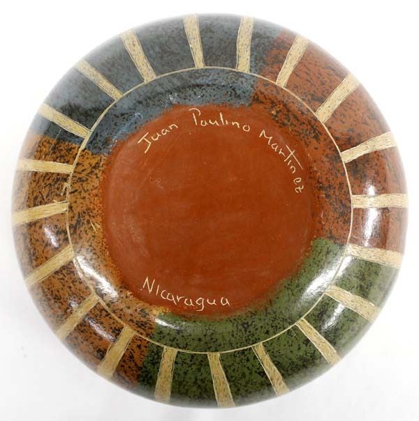 Phenomenal Nicaraguan Pottery Bowl by Juan Paulino Martinez, features beautifully lines in a melon style design, signed on the bottom, ''San Juan de Oriente Nicaragua'', measures ''3.5'' x 6'', gorgeous colors, FYI: ''Juan is 41 years old and has been making pottery for the past 20 years. He produces extremely intricate geometric works with exacting detail.''