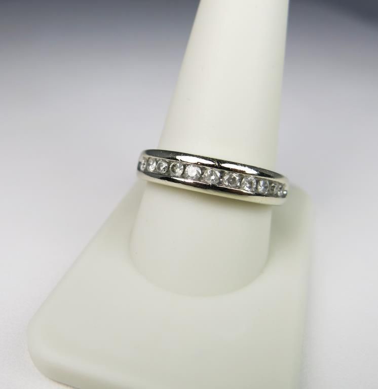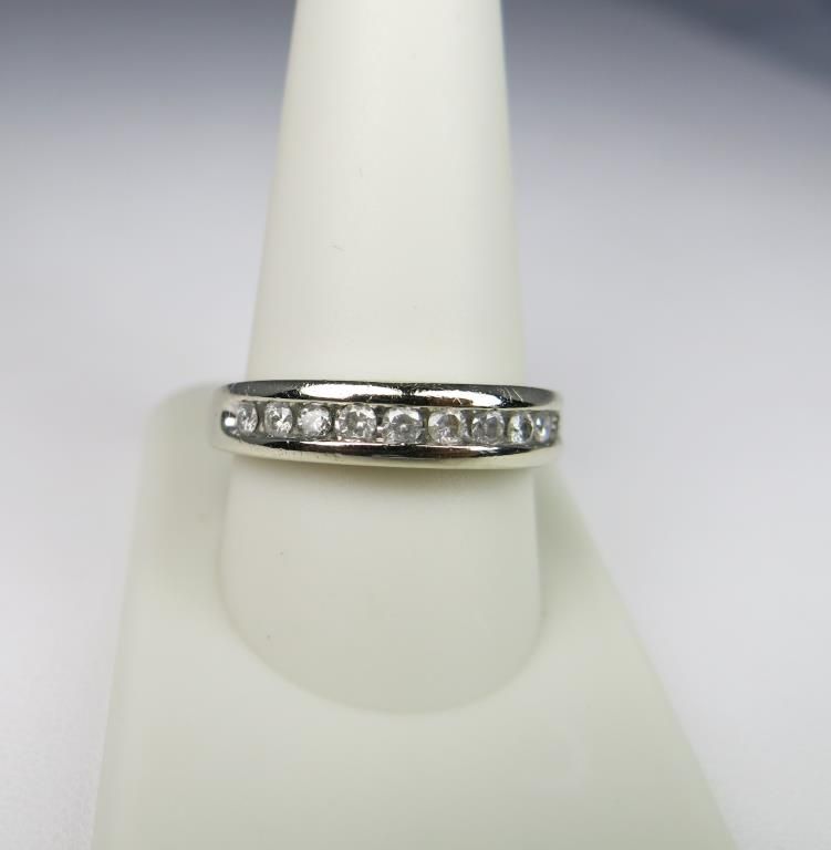 Nice 10 karat white gold Gents ring channel set with 11 round diamonds weighing approx. 0.50 carats of H-I colors and SI clarity. Retail $1000-$1,500 Estimate $500-$800 Nice