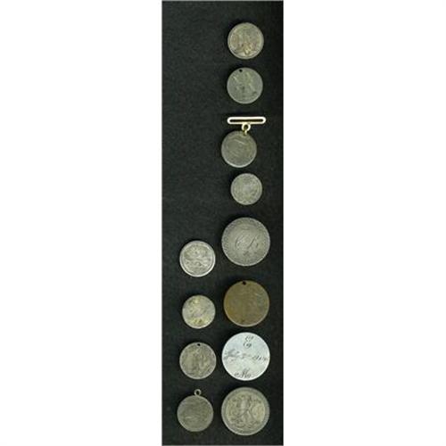 <B>Nice 12-Piece Assortment of Love Tokens.</B></I> A variety of love tokens including three quarters, seven dimes (including an 1835 Capped Bust), plus a couple of other copper and silver pieces.<BR><BR><b>Shipping:</b> Coins & Currency (<a target="_blank" href="http://www.heritageauctions.com/common/shipping.php">view shipping information</a>)