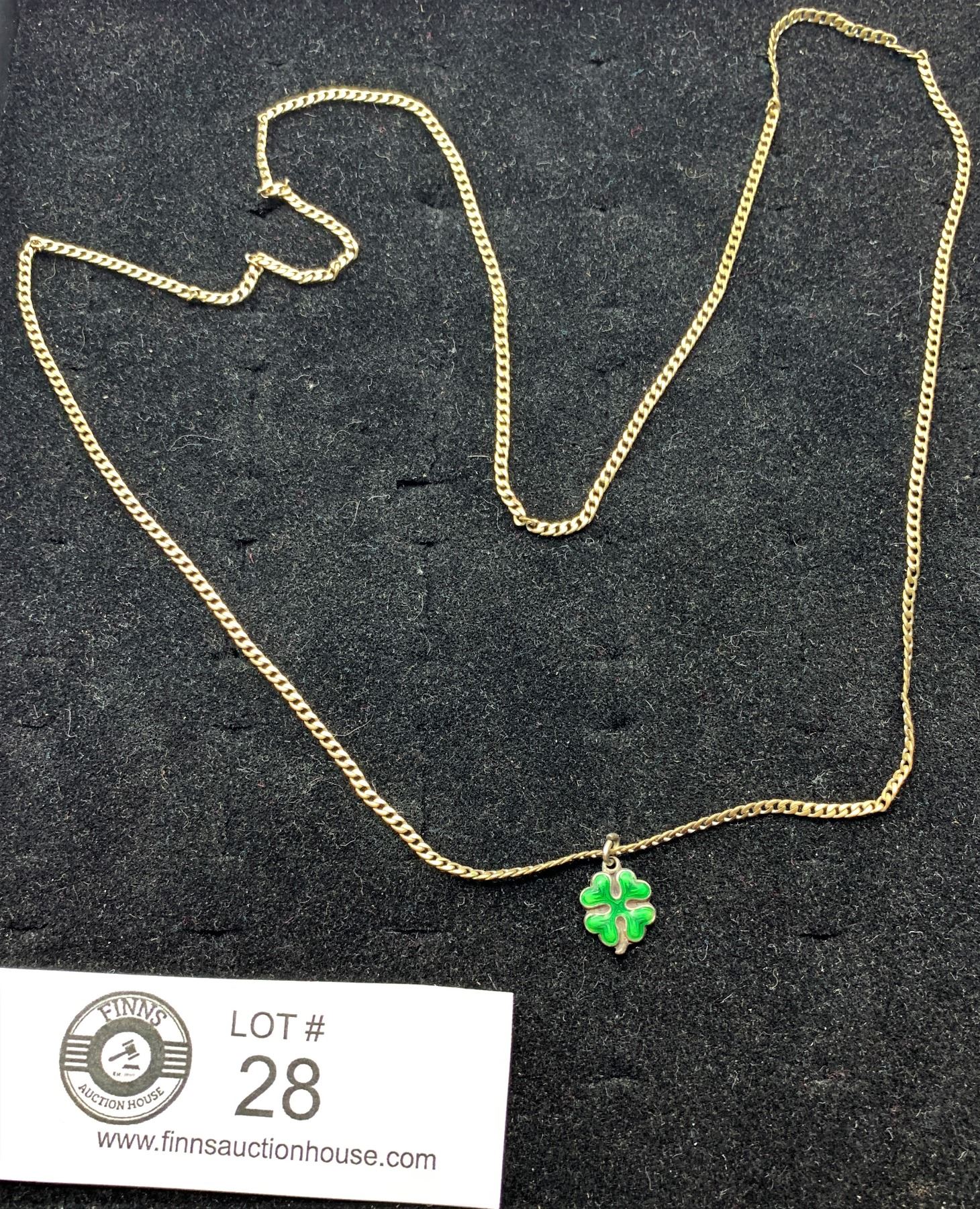 Nice 4 Leaf Clover Enamel & Sterling Necklace