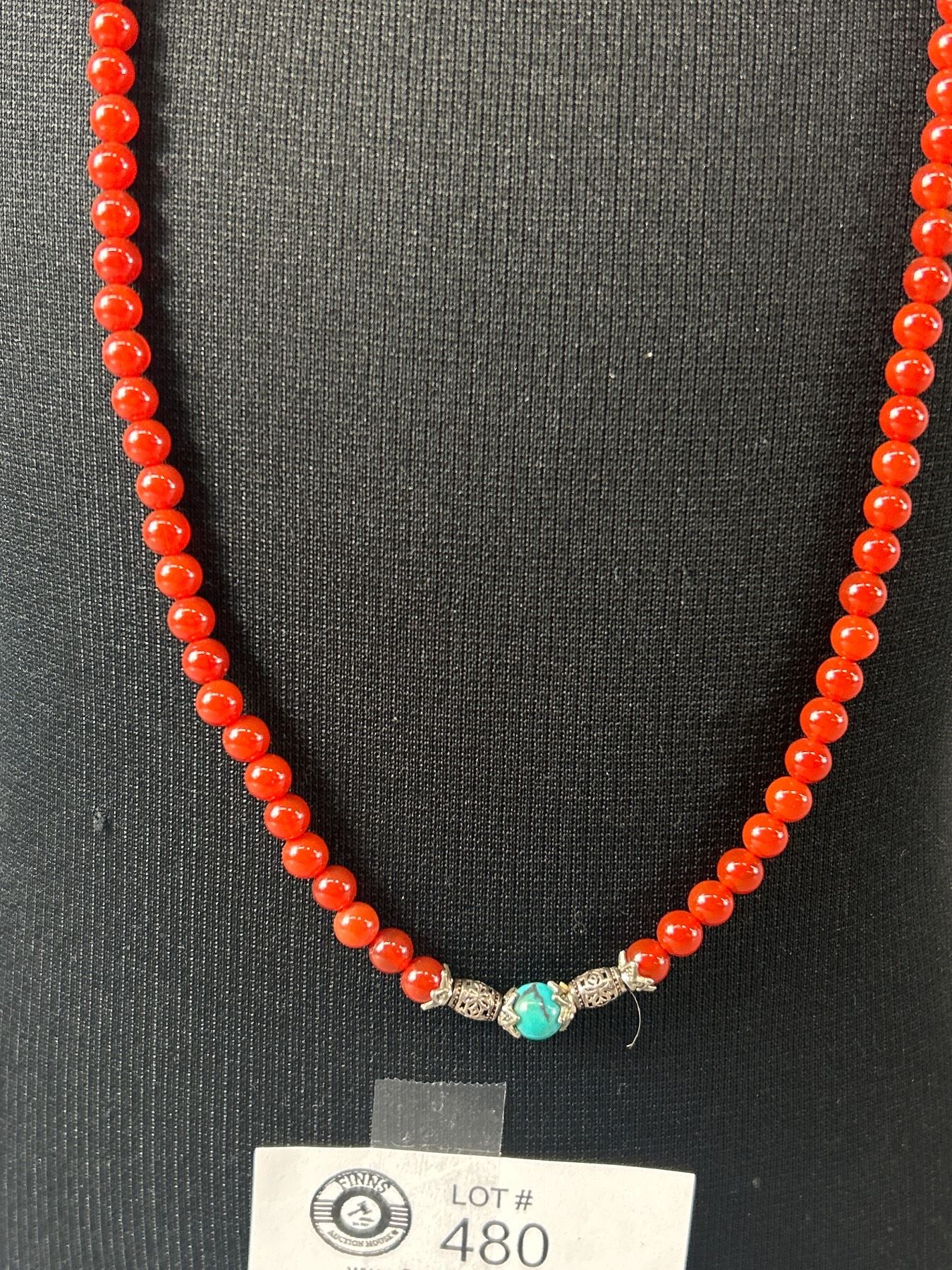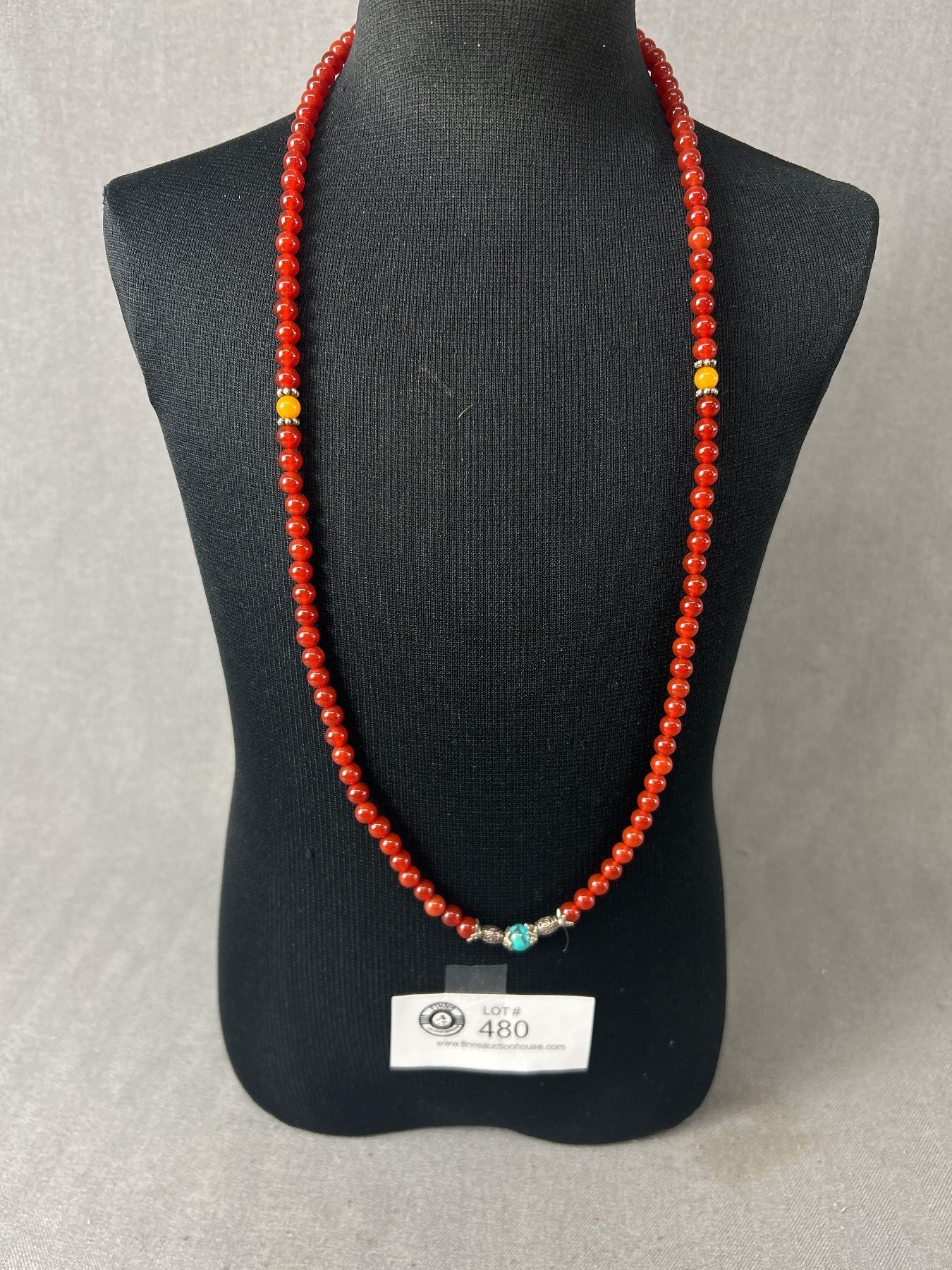 Nice Beaded Glass/Stone Stretch String Necklace, Approx. 26" L