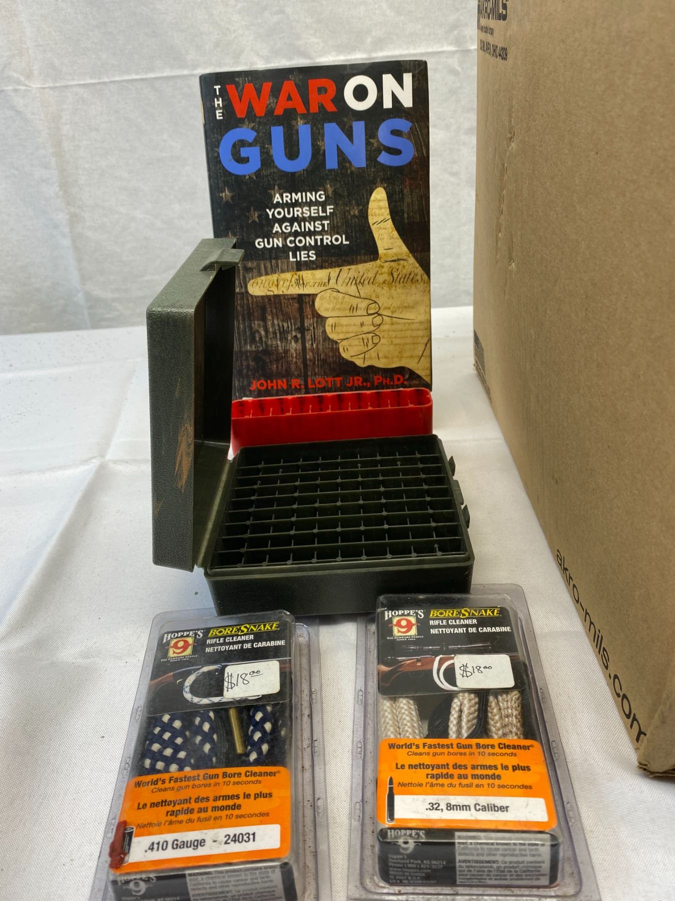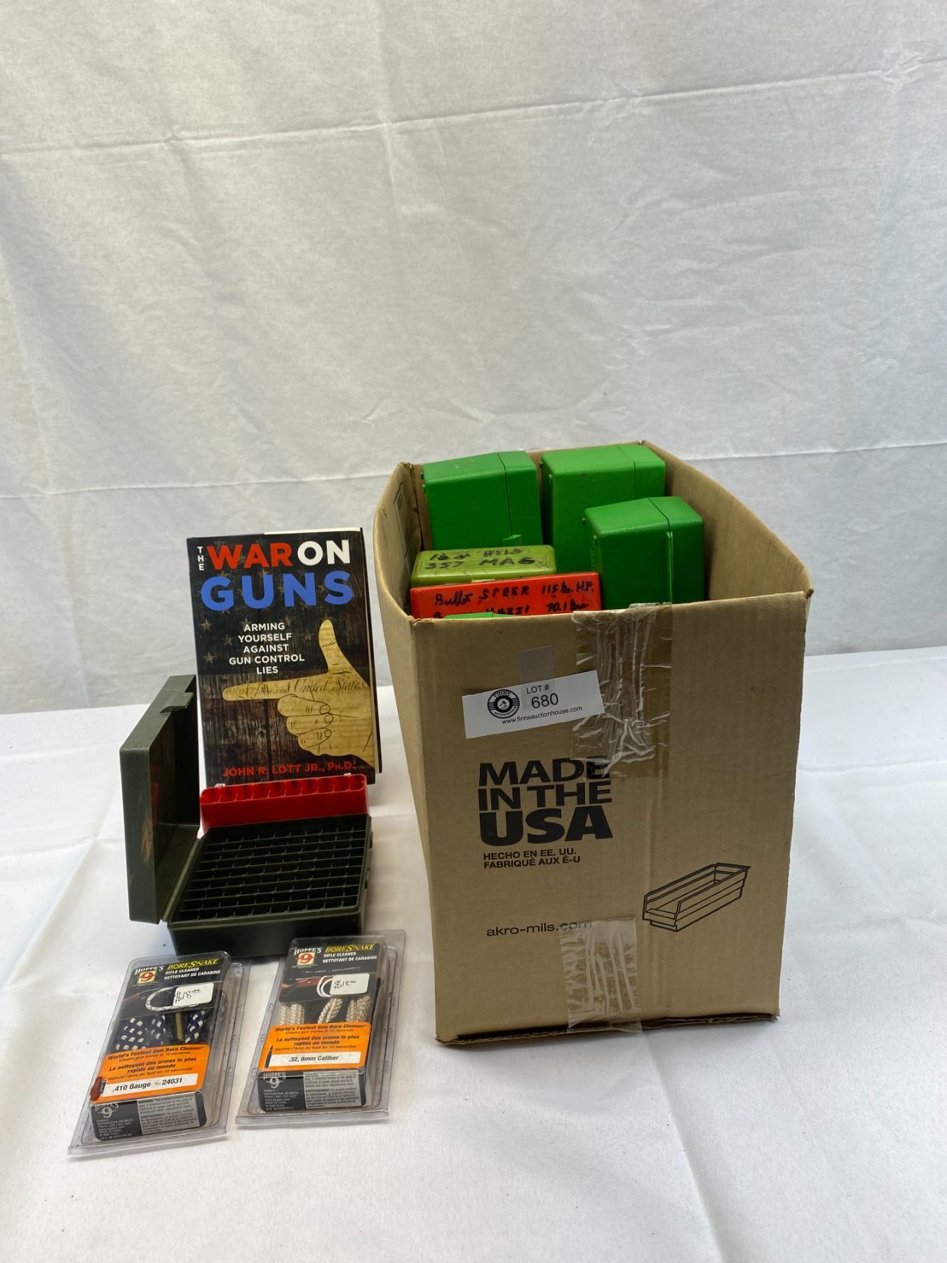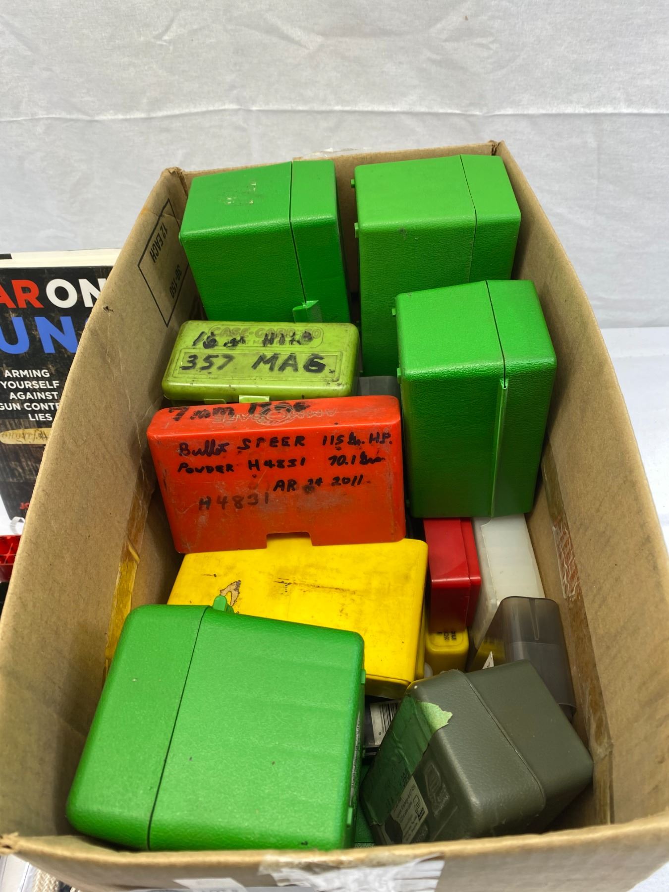 Nice Box Lot Of Plastic Ammo Boxes, Books, Etc.