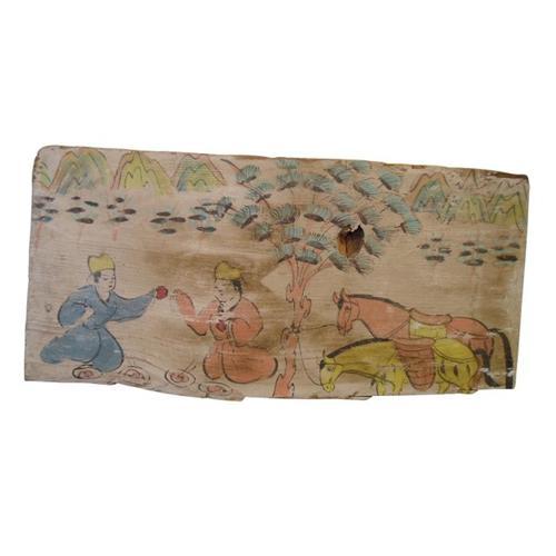 The item we take on to you is a rare and colourful Chinese Tang Dy wood panel .The picture on the wooden board portrayed lively the tourists picnicing in the wild tied their horses around trees in ancient china.It is turely a natural wood board,but not combined one by other materials,the texture still is obvious.Although passed sunshining and wind many years,the the colour of painting remains bright and rich,the character in the picture still keeps the vivid condition.The item is one of piece of a great artwork.We also provide other portions of the great painting for you.Please order it at once ,so you can enjoy sharing these unusual and beautiful treasures with your friends and relatives.