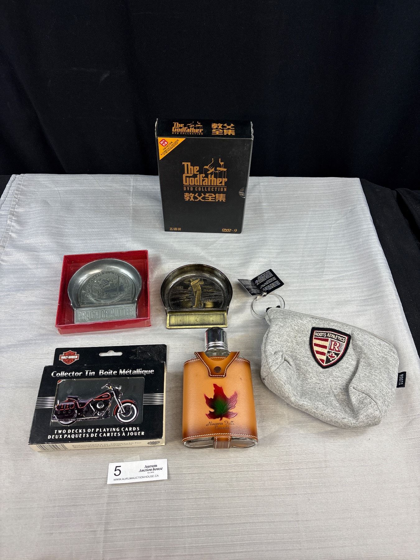 Nice Collectible Lot of DVDs, Flask, Ashtrays etc