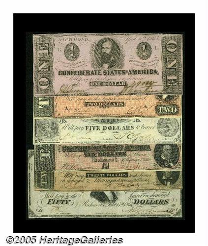 <B>Nice Confederate Grouping,</B></I> including T36 <B>VF-XF;</B></I> T62 <B>Choice AU;</B></I> T66 <B>Choice AU;</B></I> T67 <B>CU;</B></I> T68 <B>Choice CU;</B></I> and T70 <B>CU.</B></I><BR>