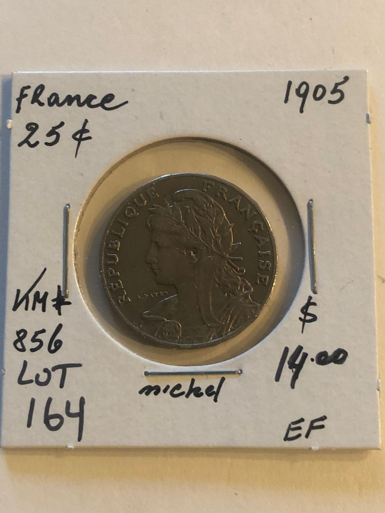 Nice Early 1905 France 25 Cents in Extra Fine High Grade KM 856
