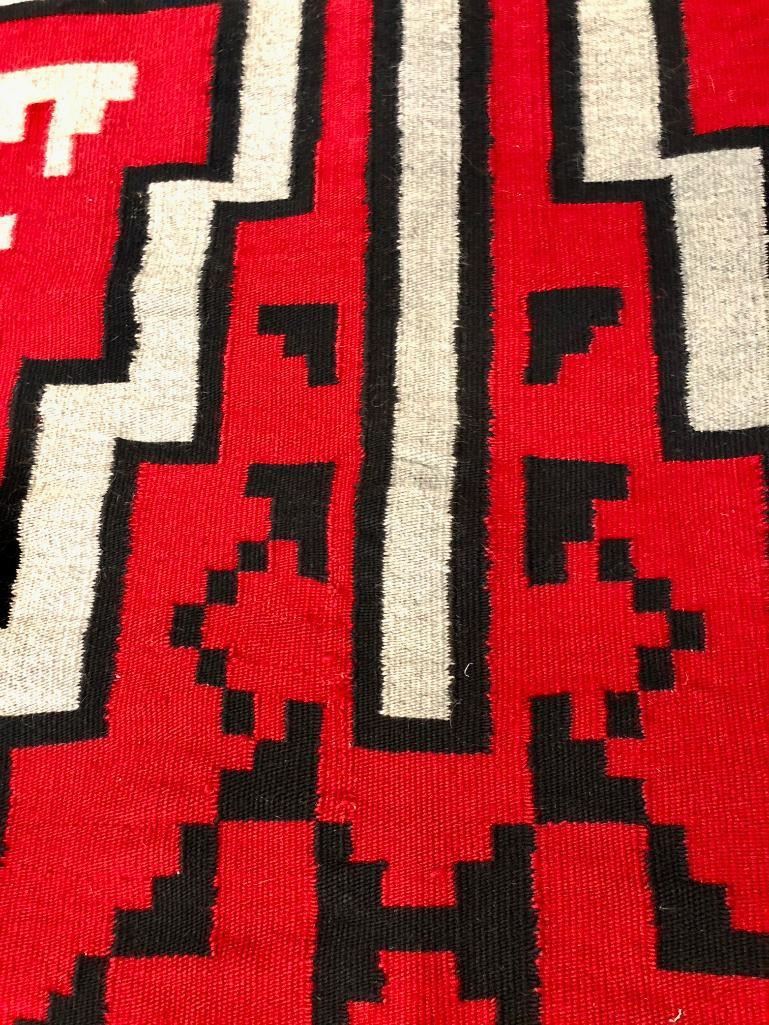 Presented for sale in this lot is a very nice, Ganado style, Navajo textile featuring reds, whites, blacks and grays in a tightly woven pattern. This rug really "pops." MAKER: Unknown Navajo weaver. APPROX AGE: C. 1980s. SIZE: 37 inches wide X 52-1/2 inches long. CONDITION: Good for its age, normal wear expected. Please look closely at the pictures as they are an important part of our description and are hereby incorporated into the description, specifically with regards to condition. SHIPPING: There will be a $5 handling / packaging fee for shipping this lot. The actual cost of postage will be added on top of that. BUY IT NOW: If you would like to buy this item now, without waiting for the auction day to bid on it, we do offer this option (which is available up to 48 hours before the actual auction starts). The “Buy it Now” price is the high estimate of this lot (plus applicable fees and the Buyer's premium is discounted to 10% when using the Buy it Now option). If you would like to exercise this option, you must contact us by email (or phone as long as you talk to someone live). Reference this lot number and your intention to "Buy it Now."