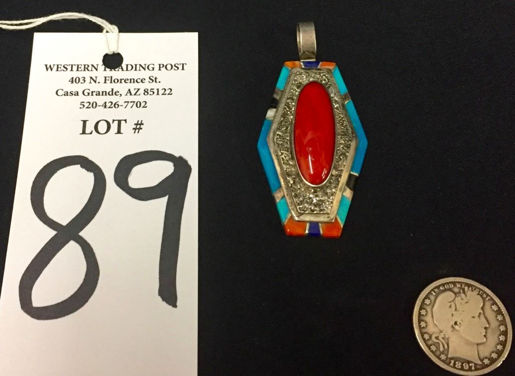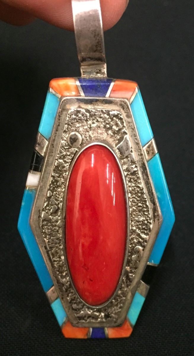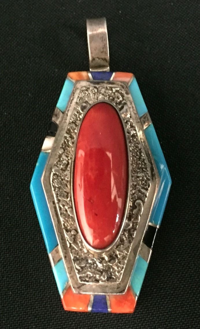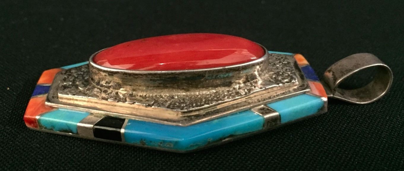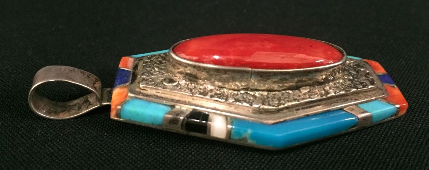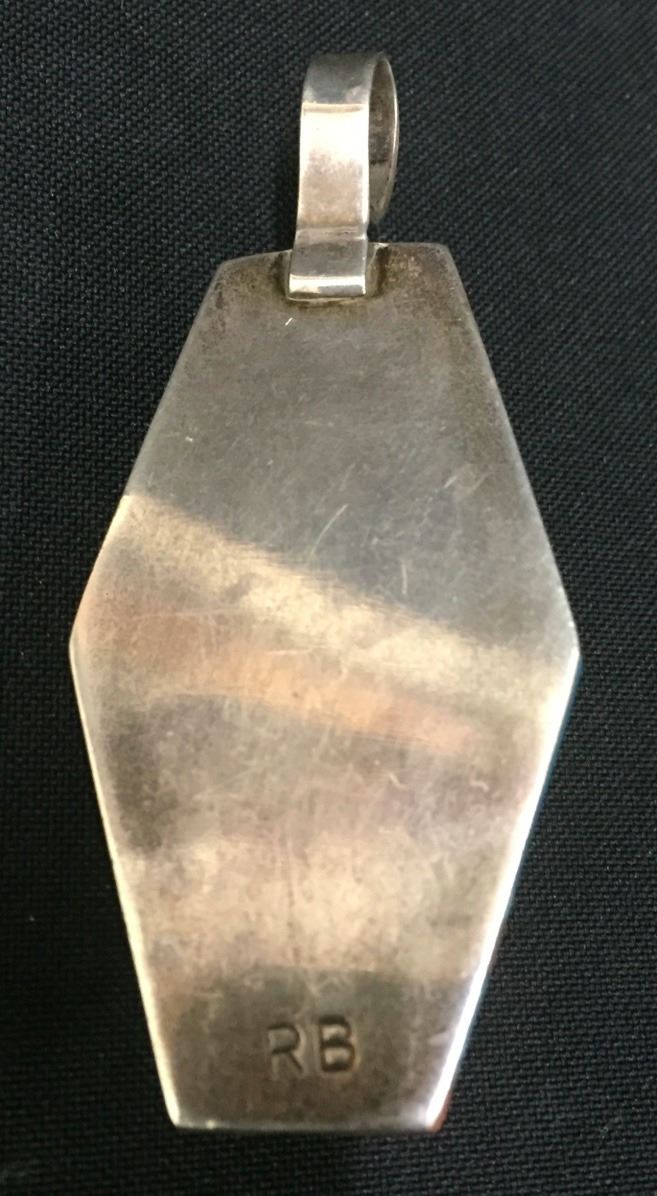 Maker: Richard and Rita Begay, Navajo. Approx. Age: Fairly modern. Size: 1.5” wide and over 2.5” long and weighs 30.2g. Condition: Good. Additional Info: Nice inlay work set in sterling silver. Please look closely at the pictures - they are an important part of our description. Shipping: There will be a $5 handling / packaging fee for shipping this lot. The actual cost of postage will be added on top of that.
