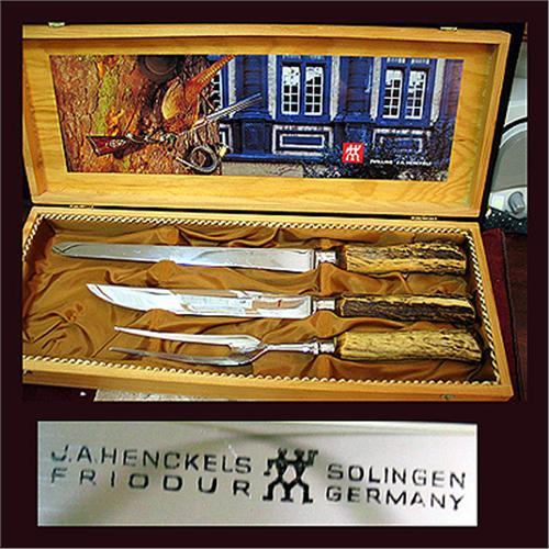 Nice J.A. Henckels Friodur Carving Set in wooden box. Made in Solingen, Germany