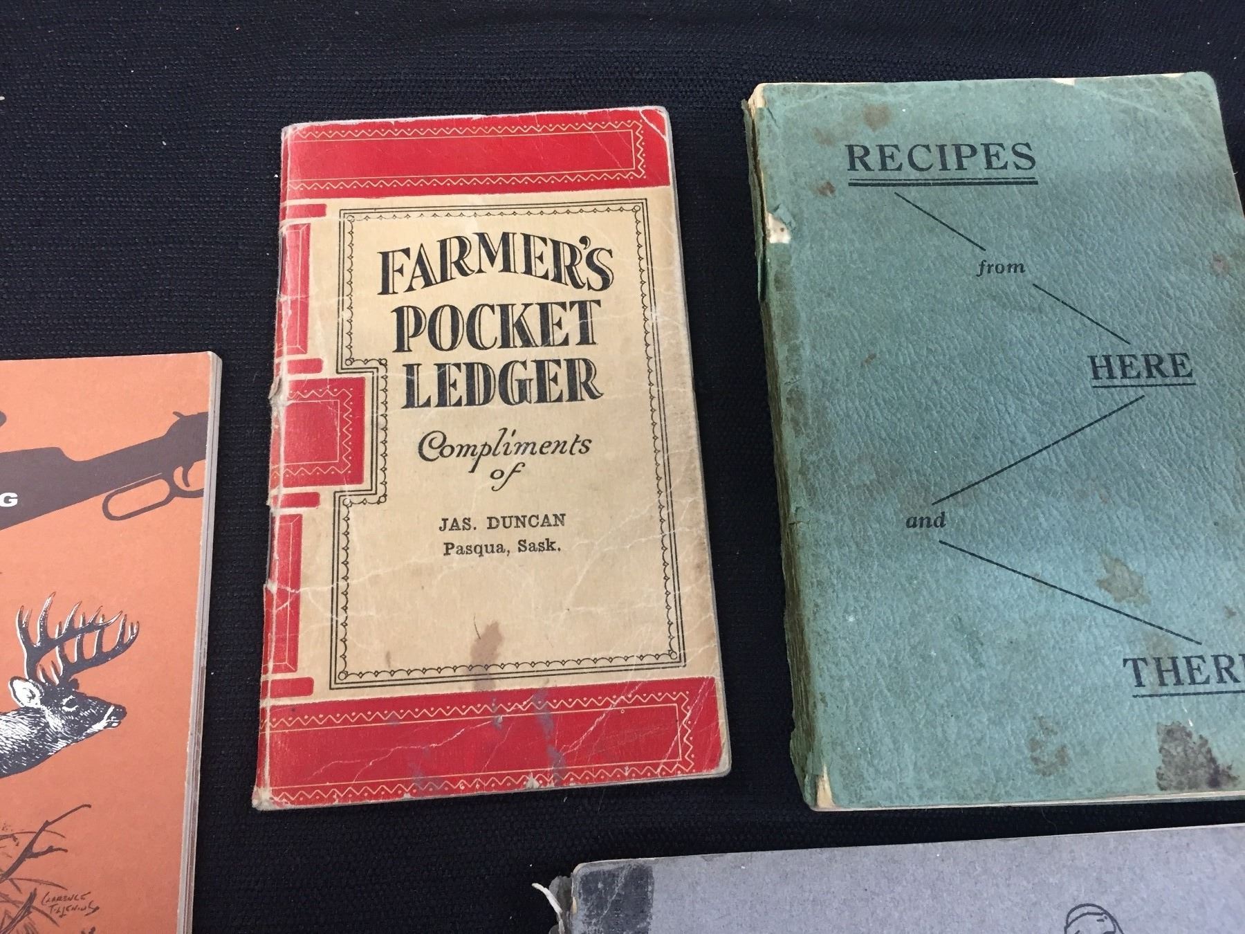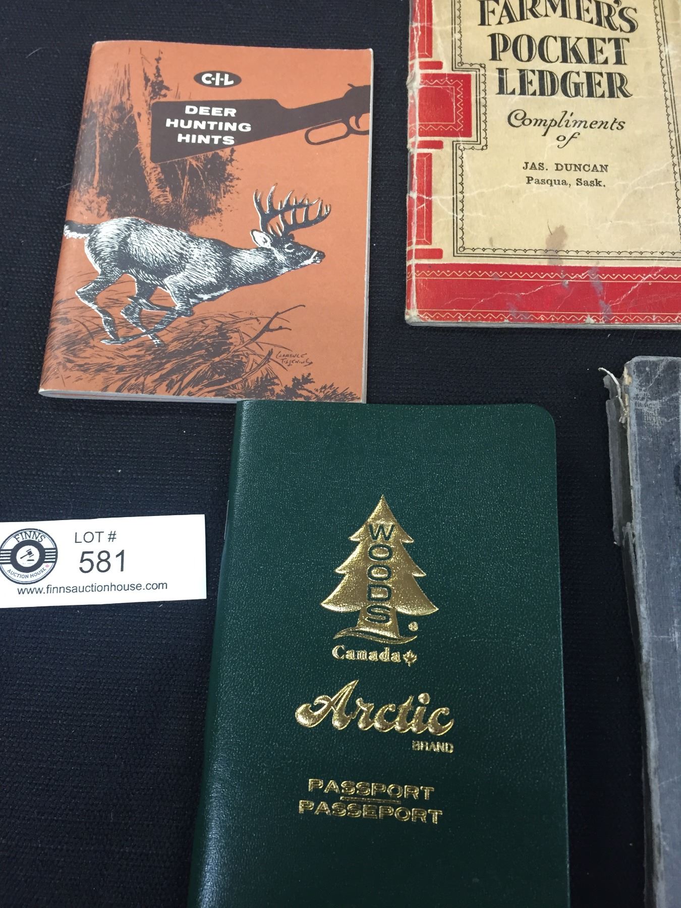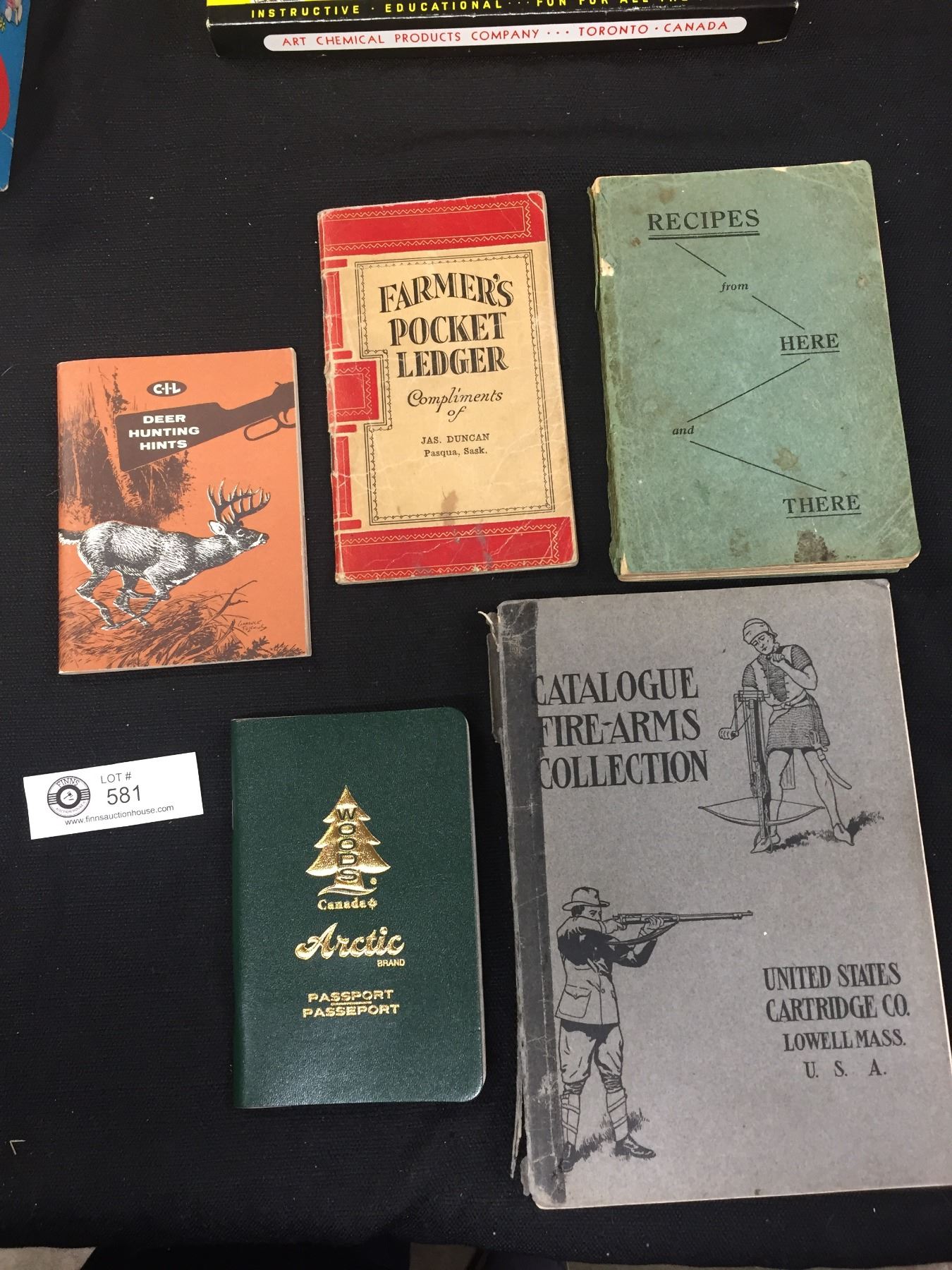 Nice Lot of 5 Books. Firearms Collecting, Farmers Pocket Ledger,Recipe Book,Deer Hunting and a Woods Arctic Brand Passport. Nice Collection of Books