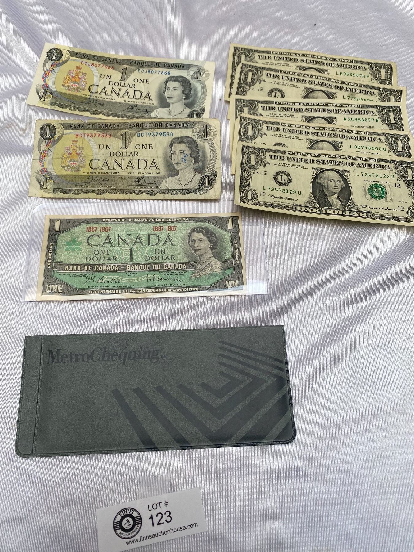 Nice Lot of 8 Older US and Canadian $1 Bank Notes