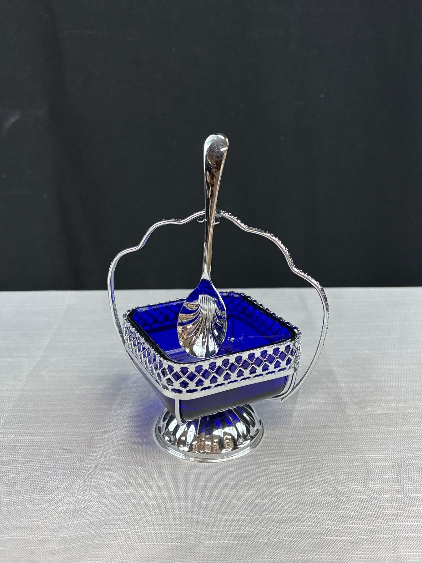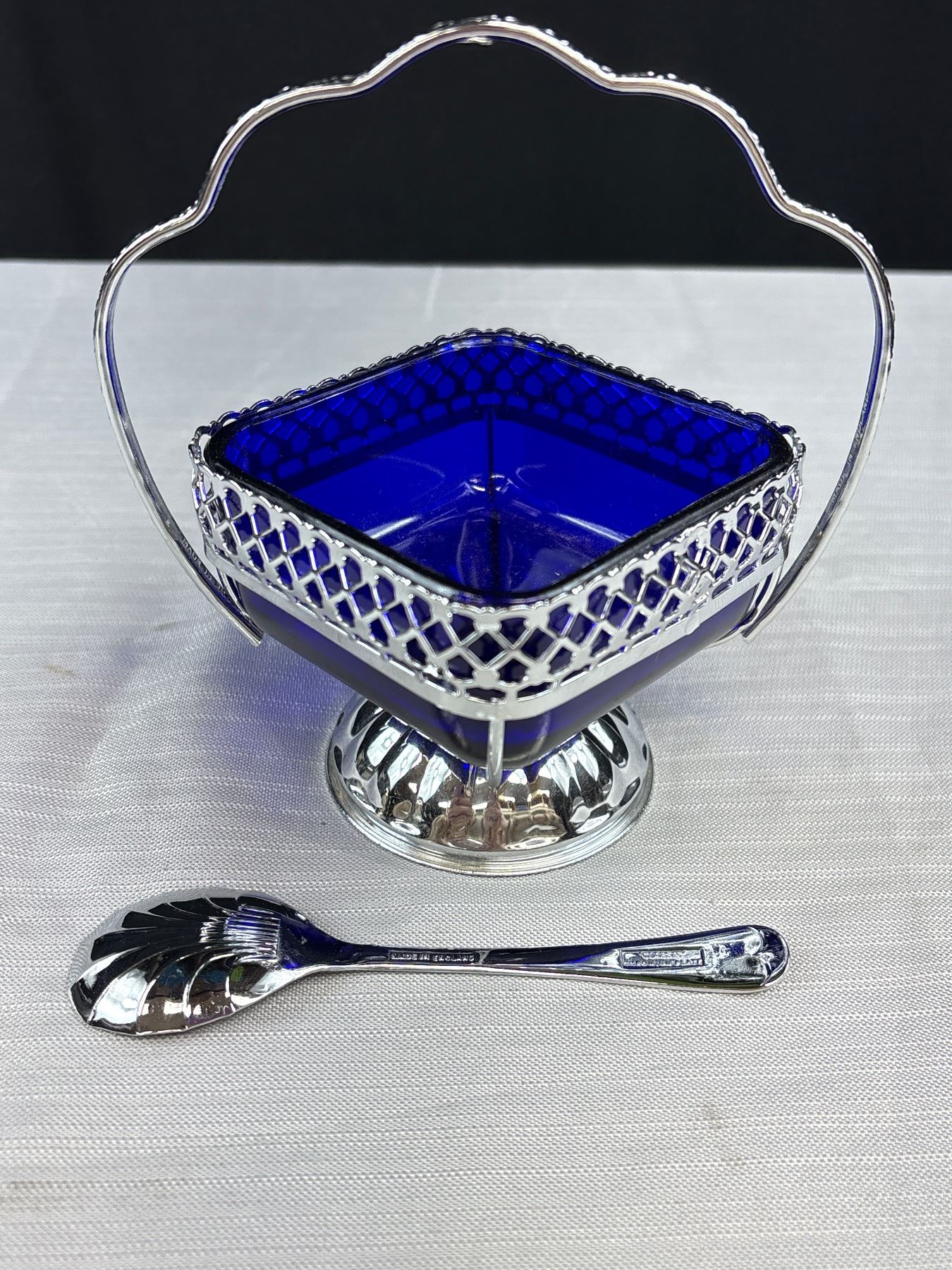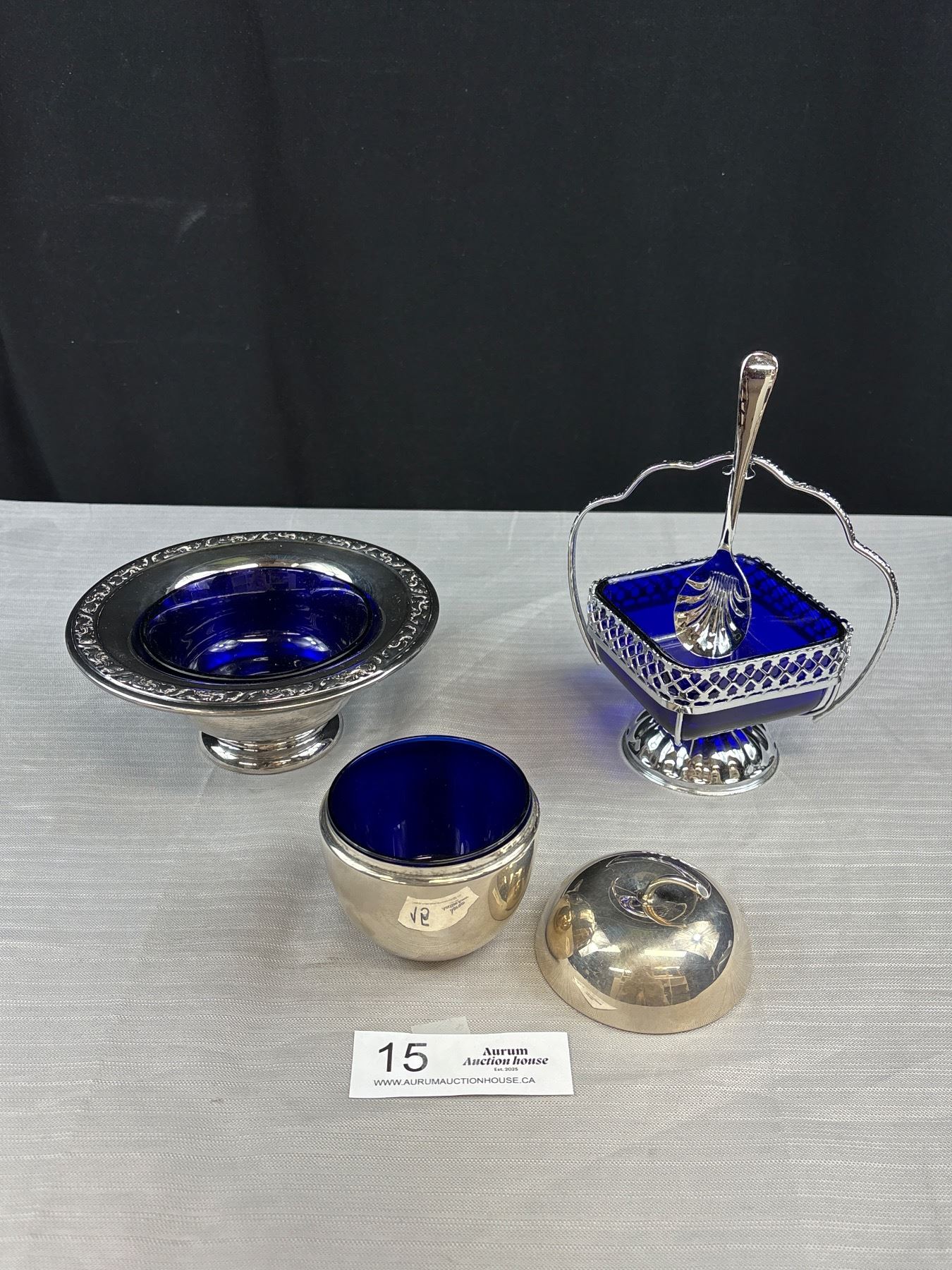Nice Lot of Silver Plated Items w/ Cobalt Blue Inserts