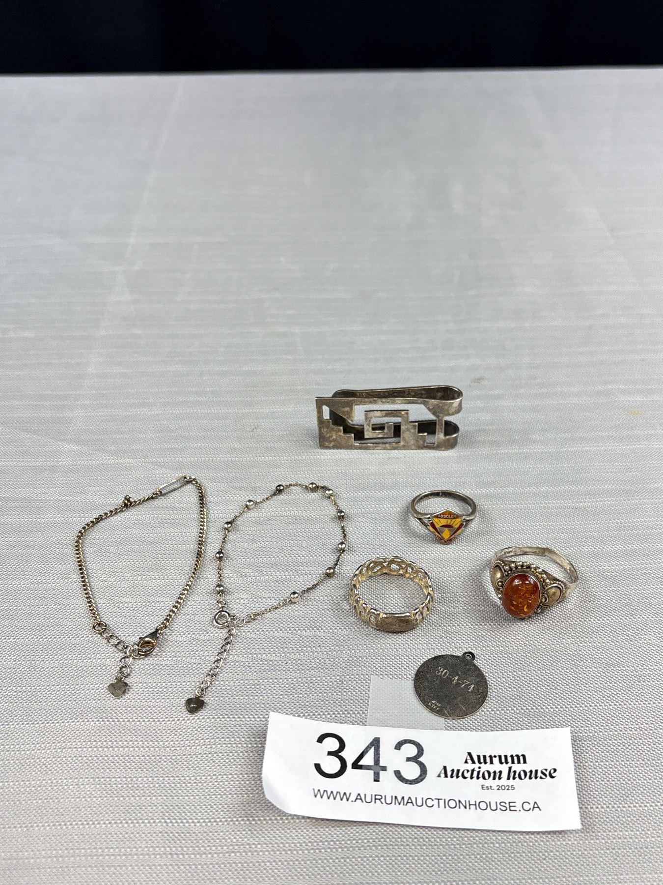 Nice Lot of Vintage Sterling Silver Jewelry Money Clip, Rings, etc 31.4 Grams