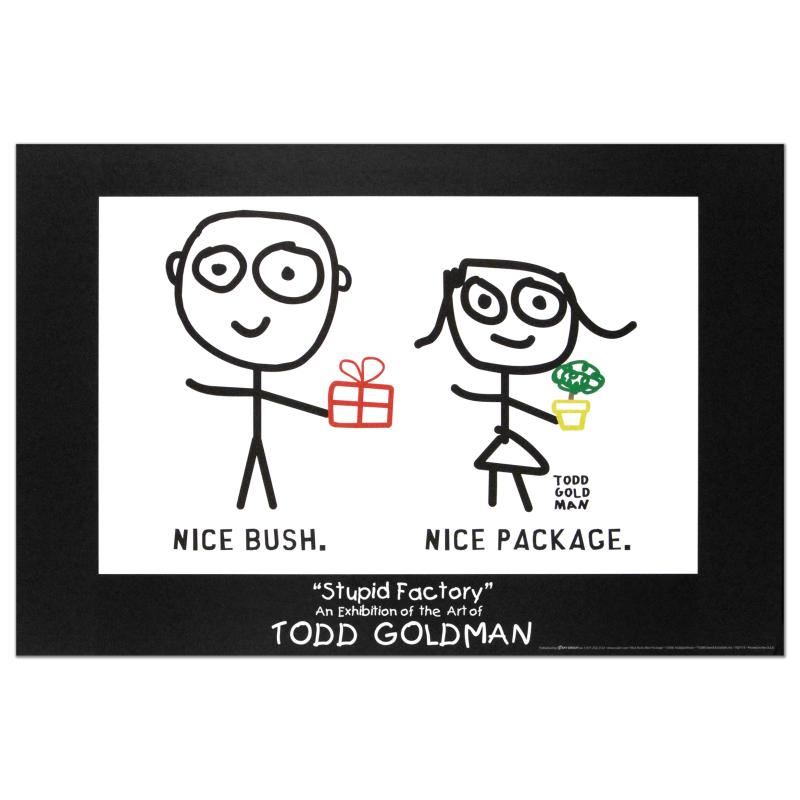 "Nice Package. Nice Bush." is a fine art litho poster by Todd Goldman! Measures approx. 36" x 24" (poster).