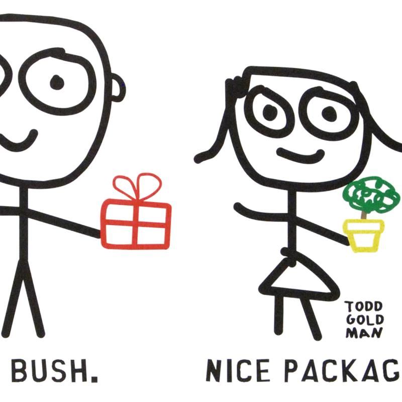 "Nice Package. Nice Bush." is a fine art litho poster by Todd Goldman! Measures approx. 36" x 24" (poster).