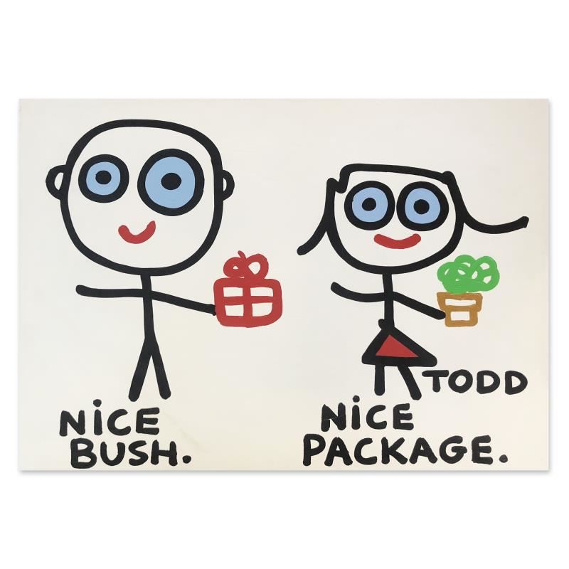 "Nice Package" is an original acrylic painting on gallery wrapped canvas by Todd Goldman. The piece is hand signed by the artist and includes a letter of authenticity. Measures approximately 36" x 48" (image).