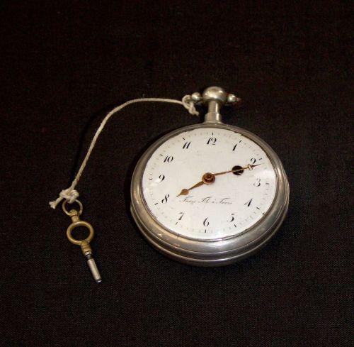 Belle montre de poche en argent, sonnerie à quart, signée FAURE ET FILS A TOURS, cadran en émail, échappement à verge, fusée et chaîne, en très bon état, env. 1800