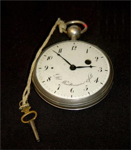 Belle montre de poche en argent à répétition quarts, signé sur le cadran et dans la boîte D.l WUILLEUMIER ET FILS A TRAMELAN No 14267, cadran en émail, aiguilles en acier bleui, échappement à verge, fusée et chaîne, en très bon état, vers 1800