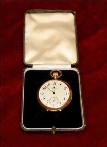 Belle montre de poche en or 18 cts, signée TIFFANY & CO NEW YORK, No 89281, cadran en émail blanc (cheveu) à chiffres arabes, petite seconde à 6 heures, mouvement blanc décoré, échappement ancre, balancier bimétallique, réglage micrométrique, avec étui, env. 1920