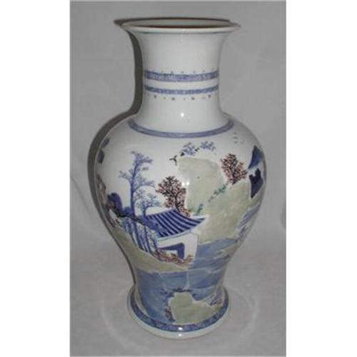 Very nicely potted tall Chinese 19th c. copper red, blue and celadon porcelain vase in fine condition, with double ring mark on the bottom.