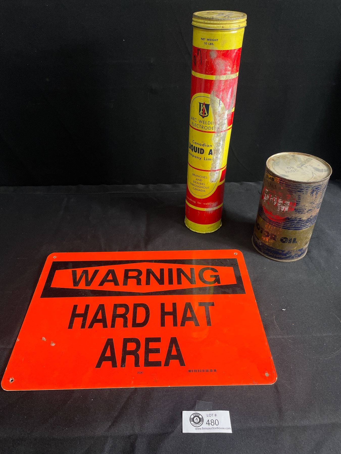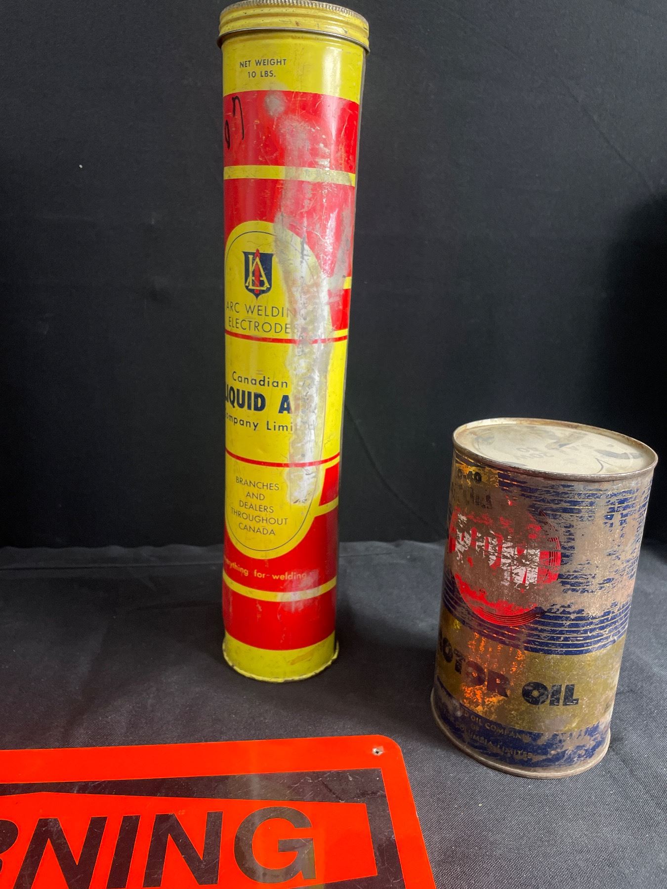 Nice Vintage Lot of Sign, Arc Welding and RPM Motor Oil Tin