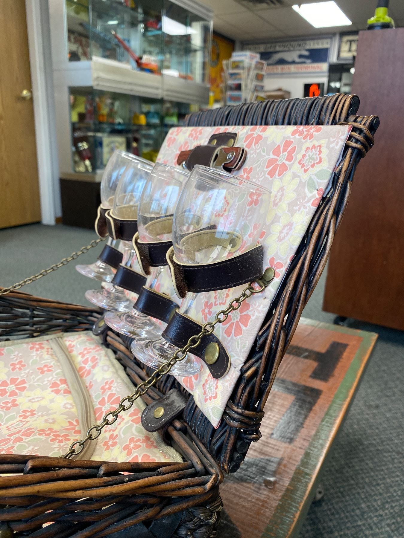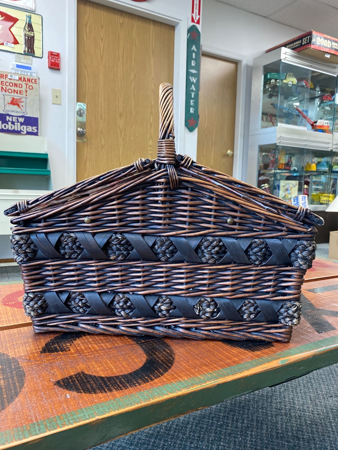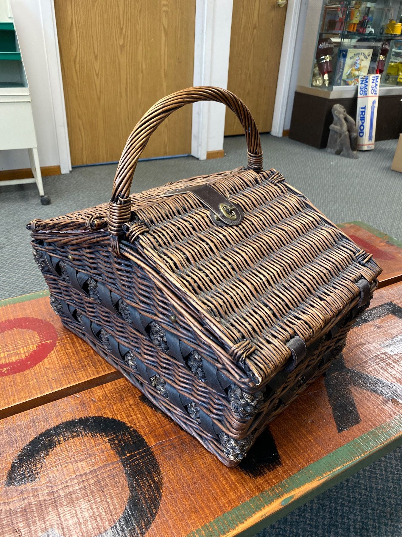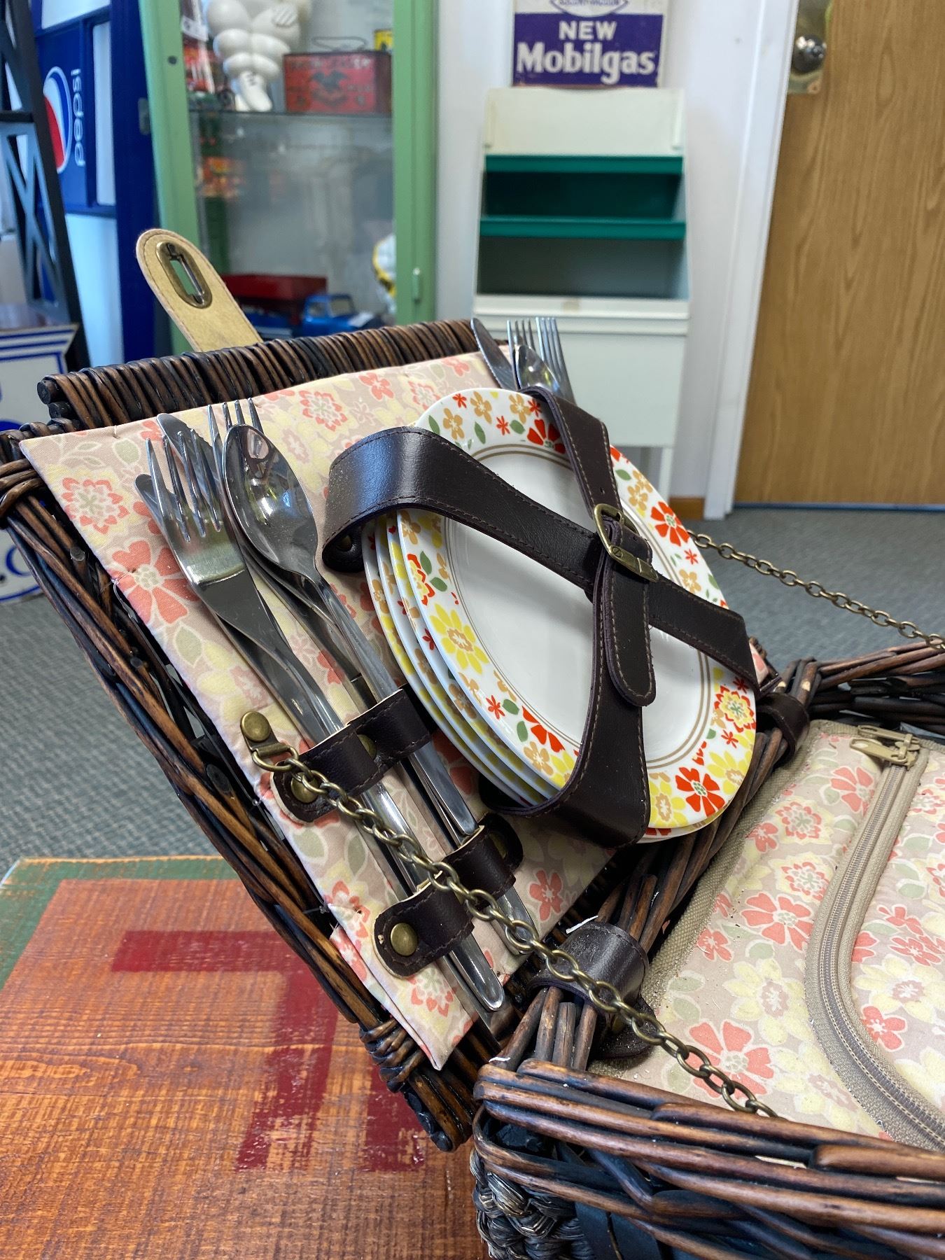 Nice Vintage Wicker Picnic Basket w/ Utensils. Great Shape